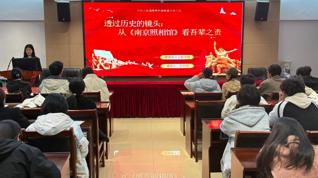 为深化爱国主义教育,引导青年学子铭记抗战历史,传承红色基因,10月24日,做爱电影于理科楼402会议室举办“铭记抗战历史,奋进复兴征程”微团课比赛初赛。本次活动由朱国政、汪璐璐主持,学生会主席团成员担任评委,2024级与2025级学生积极参加。