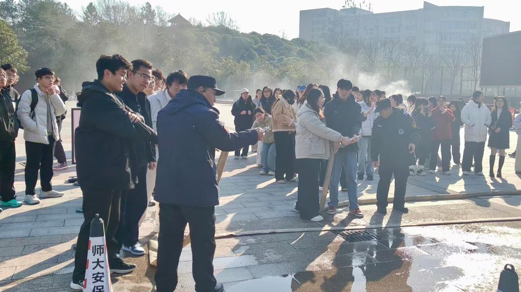 演练开始前,校保卫处专业人员系统讲解了干粉灭火器、消防呼吸面罩、消防栓及消防水带等常用器材的使用方法与注意事项,为实操环节打下坚实基础。在随后的实操演练中,参训学生在专业指导下分组进行实战操作。灭火器使用区内,同学们严格遵循“提、拔、握、压”的规范步骤,有条不紊地对模拟火源开展扑救演练;消防栓操作区里,学生们认真学习水带接驳、水枪调试的实操技巧,反复练习确保动作标准到位。整个演练过程组织有序,同学们认真操作,现场气氛严肃认真。方明科、张丽及赵雪深入各演练点位,亲手参与实操体验,与同学们交流操作要领,反复强调消防安全的重要性。